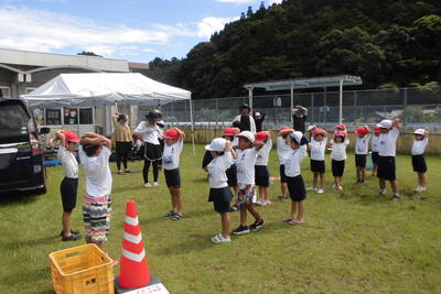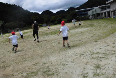 まず、準備運動をしました。その後、赤白の2チームに分かれて、ルール説明がありました。