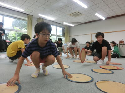 ジャスチャーゲーム、お玉リレー、しっぽ取り、ひっくり返しゲームをして親子で一緒に体を動かしました。