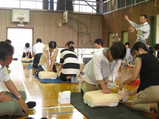 水泳の時期を迎え、職員も心肺蘇生法の研修を行いました。