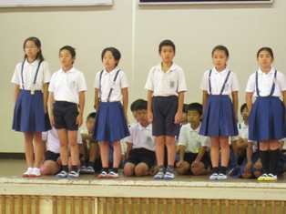 5年生が集団宿泊にいったことを写真を交えて発表しました。