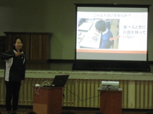 栄養教諭の西先生から、食事のマナーについてお話がありました。