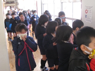 ハンカチを口にあてて、家庭科室から遠い通路を選んで避難しました。