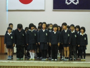 これまで津奈木小学校のためにがんばってきてくれた6年生を気持ちよく送り出すために、感謝の気持ちをこめて歌います。