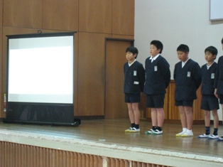 つなぎっ子集会では2年生が町探検で調べたことを発表してくれました。