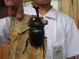 4年生が理科の学習で育てていた、カブトムシの幼虫がみごとに成虫となりました。