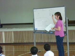 1年生から6年生まで、すっかりお話の世界に引き込まれています。