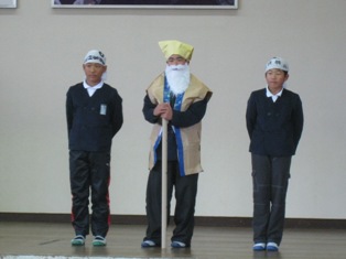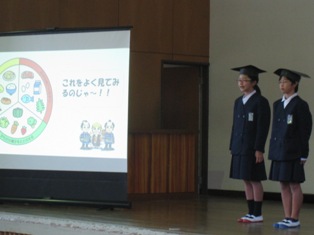 食通で知られる水戸光圀こと水戸黄門がナビゲーターを務める設定で、給食委員会が栄養のバランスの大切さを発表しました。