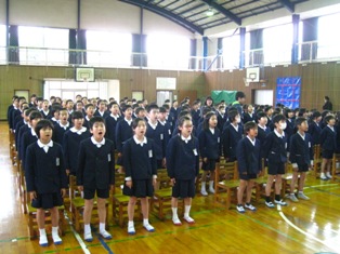 卒業式を明日に控え、6年生が在校生より一足先に、終了式を行いました。