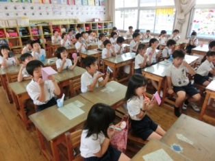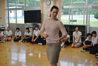 本校は今年度、特別の教育課程編成の指定を受けていて、1年生から英語活動に取り組んでいます。