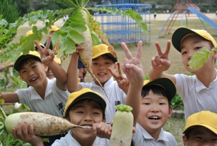 自分たちが育てたダイコンへの愛情はひとしおで、みんなでおいしくいただきました。