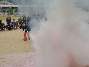 当日は避難訓練だけでなく、消防署、立て尾電設様のご協力で消火や煙の体験まですることができました。
