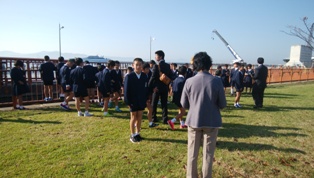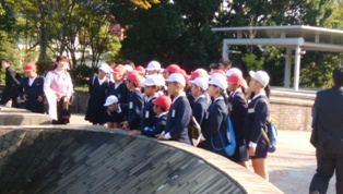 6年生は平和公園を訪れ、平和祈念像、平和の出水等を見学しました。