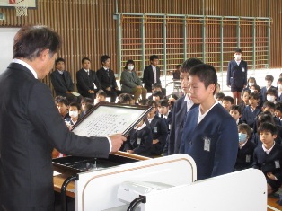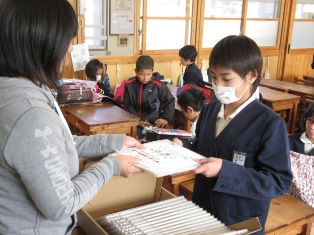 まだ、空いている机が目立ちましたが、それぞれに2学期の通知票を受け取りました。