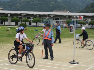 低学年は歩き方、中・高学年は自転車の乗り方を練習します。