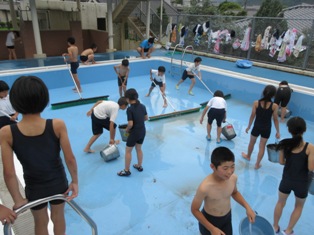 間近に迫った夏に備え、5,6年児童がプール掃除をしました。