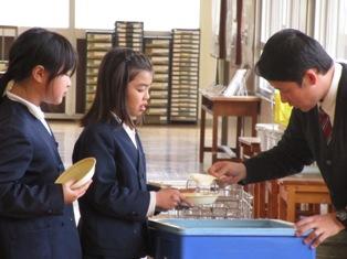 給食週間の一環で給食の時間だけ学級担任が交代するローテーション給食を行いました。