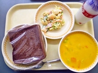 牛乳 ココアパン かぼちゃのポタージュ マカロニサラダ