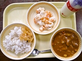 牛乳 ポークカレーライス フルーツヨーグルト 福神漬け