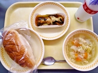 牛乳 ミルクパン 野菜スープ なすのミートグラタン