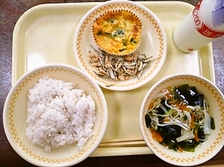 牛乳 麦ごはん 魚そうめん汁 千草焼き ナッツのりんかけ