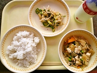 今日の給食は、家常豆腐です。家常豆腐は、中国四川省の家庭料理です。ジャージャンとは、"家庭風"や"家にありふれた"という意味があり、家で常に食べる豆腐料理ということから、この名前がついたと言われています。中華料理ですが、給食の家常豆腐は、辛くなく食べやすいと思います。ごはんと一緒にもりもり食べましょう!