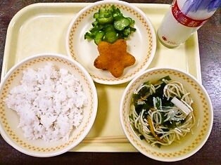 牛乳 麦ごはん 魚そうめん汁 星のコロッケ かりかりきゅうり