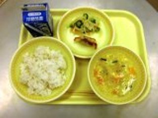 献立名:麦ご飯 牛乳 スーミータン 餃子 カミカミサラダ