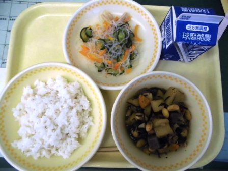 献立名:麦ご飯 牛乳 大豆の磯煮 春雨の酢の物