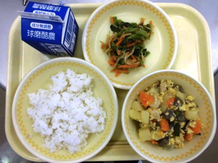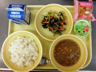 献立名:麦ご飯 牛乳 キーマカレー 海藻サラダ セレクトゼリー