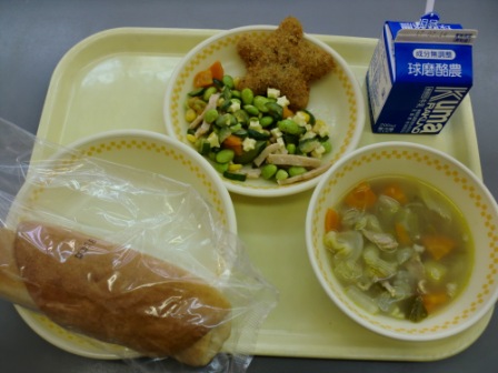 献立名:げんまいパン 七夕ポトフ 星のコロッケ 枝豆サラダ