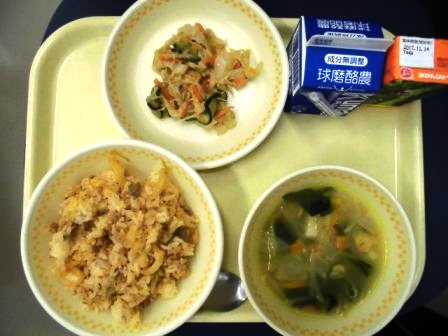 献立名:麦ご飯 牛乳 大豆の磯煮 春雨の酢の物