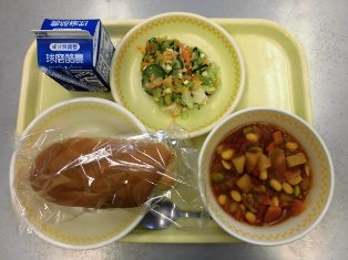 献立名:コッペパン 牛乳 チキンビーンズ イタリアンサラダ