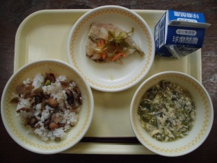 たこめし 牛乳 あおさかきたま汁 あじの南蛮づけ