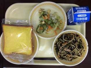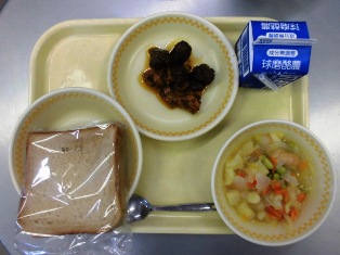 ミルクパン 牛乳 とうがんスープ なすのミートグラタン チョコタッフィー
