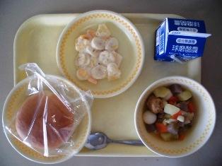 びりん飯 牛乳 白玉汁 れんこんサラダ