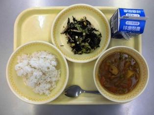 麦ごはん 牛乳 ビーフカレー ひじきマリネサラダ
