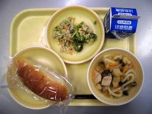 ミニミルクパン 牛乳 難関突破うどん 花野菜サラダ