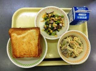 メロントースト 牛乳 アスパラのクリームスパゲッティ たこ入りビーンズサラダ