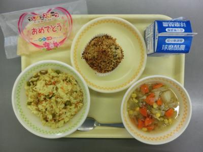 今日 は小学 6年生 にむけた卒業 お祝 い給食 です。今日 は、この1年間 の給食時間 をふり返 ってみましょう。みなさんの中 には、この1年間 で好 き嫌 いが減 った人 。食 べきれる量 が増 えてきた人 。栄養 のバランスが考 えられるようになった人 。背 が伸 び、体重 も増 え、ひとまわり大 きくなっただけではなく、給食 の時間 でも大 きく成長 したことでしょう。給食当番 の仕事 では、友 だちと協力 して頑張 ることの大切 さに気付 くことができたのではないでしょうか。給食時間 で成長 できたことを思 い出 しながら、みんなで楽 しい給食時間 にしましょう。
