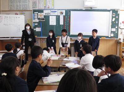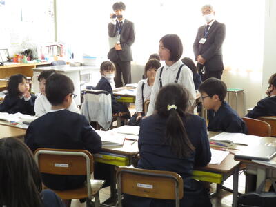 平和学習では、講話で聞いた内容と関連づけて質問をしたり、さるくガイドさんから聞き取ったことをたくさんメモしたりする6年生の姿がありました。