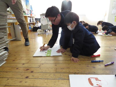1,2年生 アグリビジネスチャレンジ「段ボールのイラスト描きに挑戦」