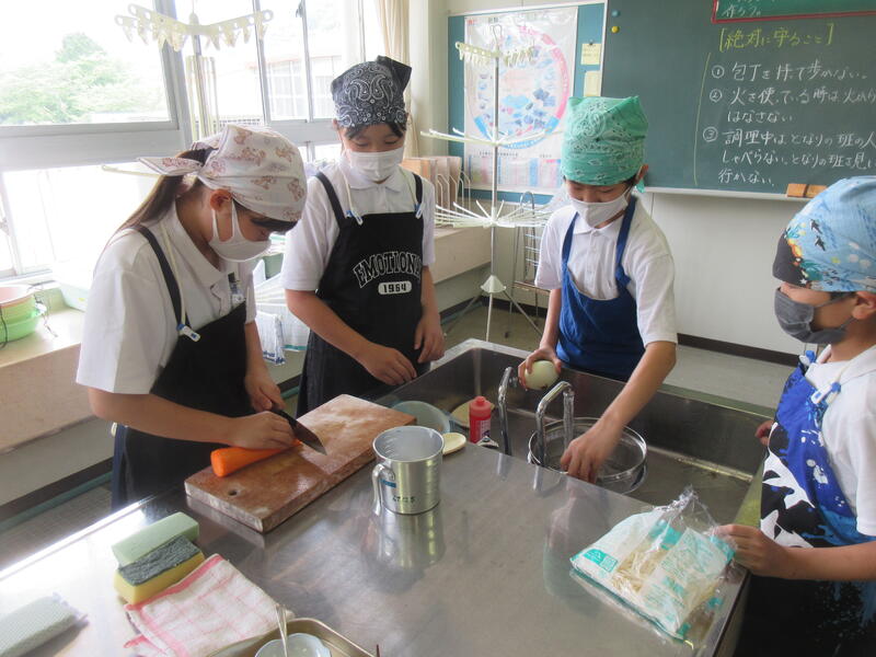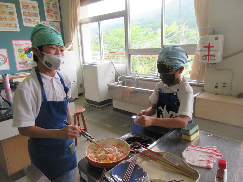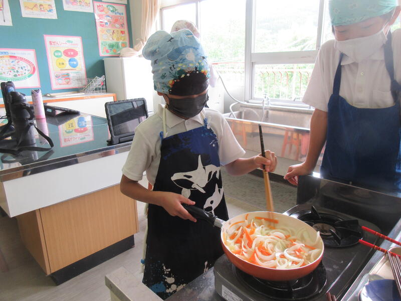 6年生が、家庭科の調理実習で野菜炒めをつくりました。野菜の切り方も均一で、炒め方も上手でシャキシャキとした仕上がりで、先生方にもたくさん褒められていました。