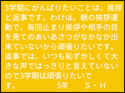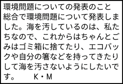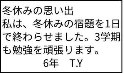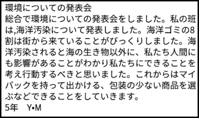 なので私は、多くの人に情報モラルの大切さについて知ってほしいと思います。 6年 T・Y