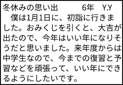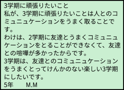 ほぼ計算ミスが多いから早く解けたら見直しを必ずするようにしたいです。 5年 M・M