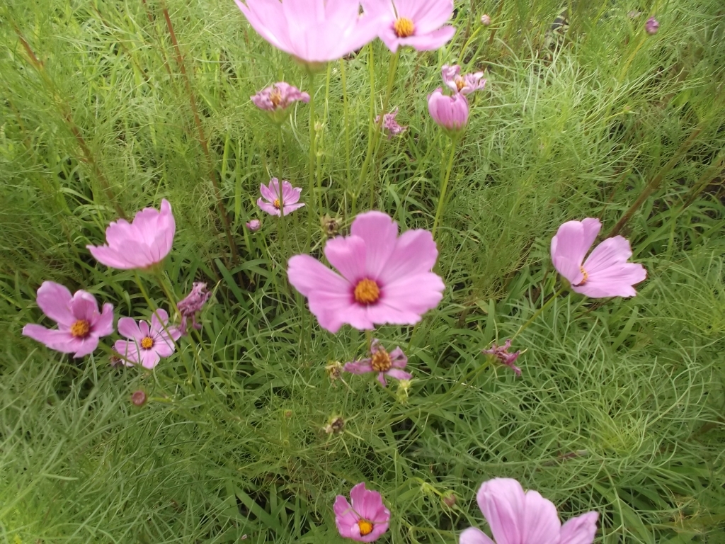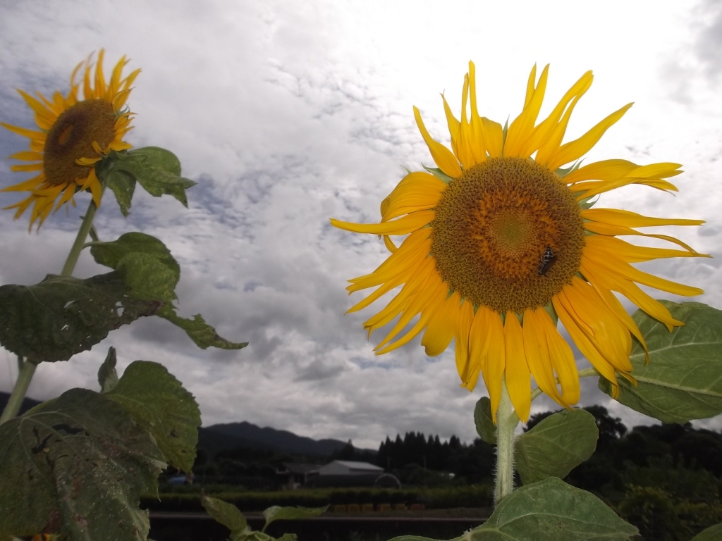 夏の花「ひまわり」と秋のイメージがある「コスモス」が並んで咲いていました。連日35度くらいの暑い日が続いていますが、秋の気配も感じました。