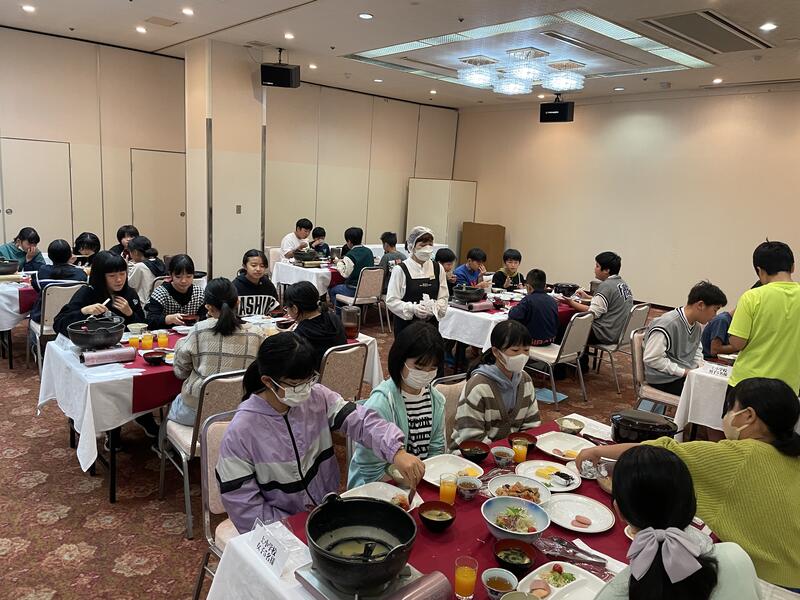 昨日はなかなか寝付けなかった子供たちも多かったようです。少し眠たそうにしている子供たちでしたが、朝ごはんで元気をチャージ!!
