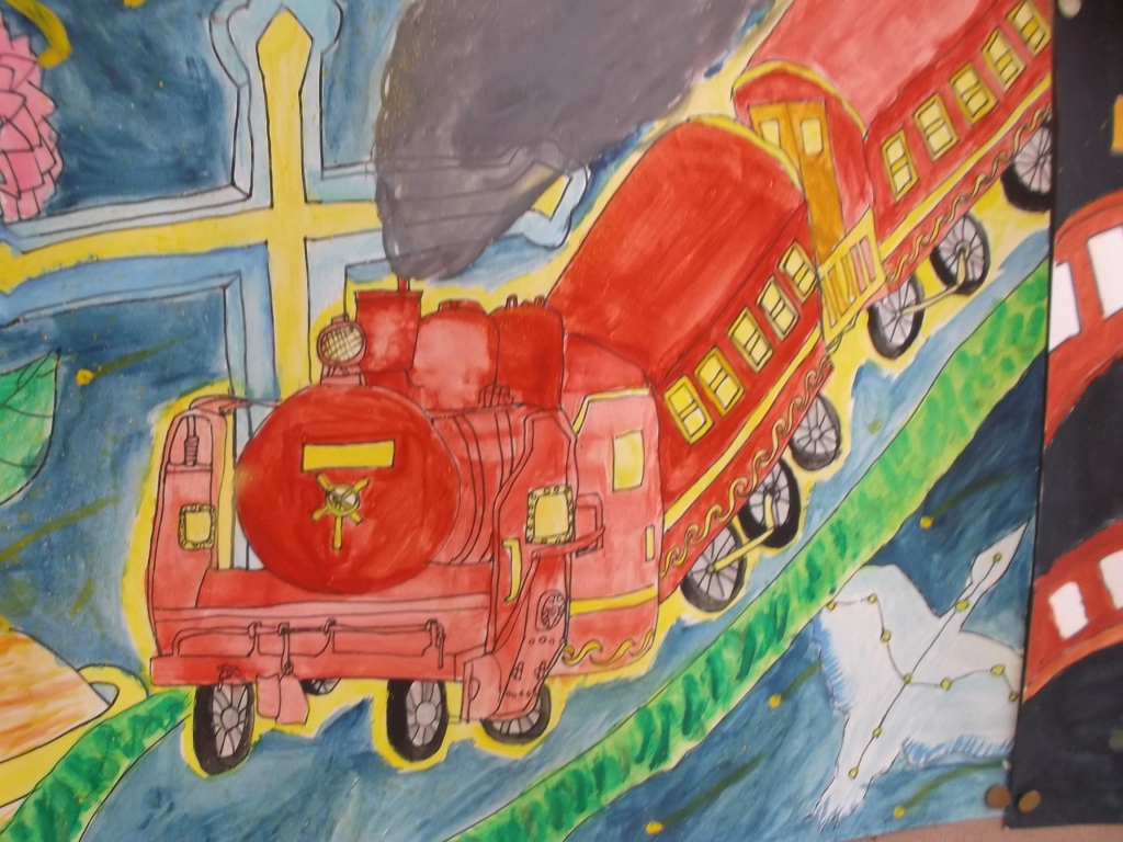 6年図工作品「読書感想画 銀河鉄道の夜」