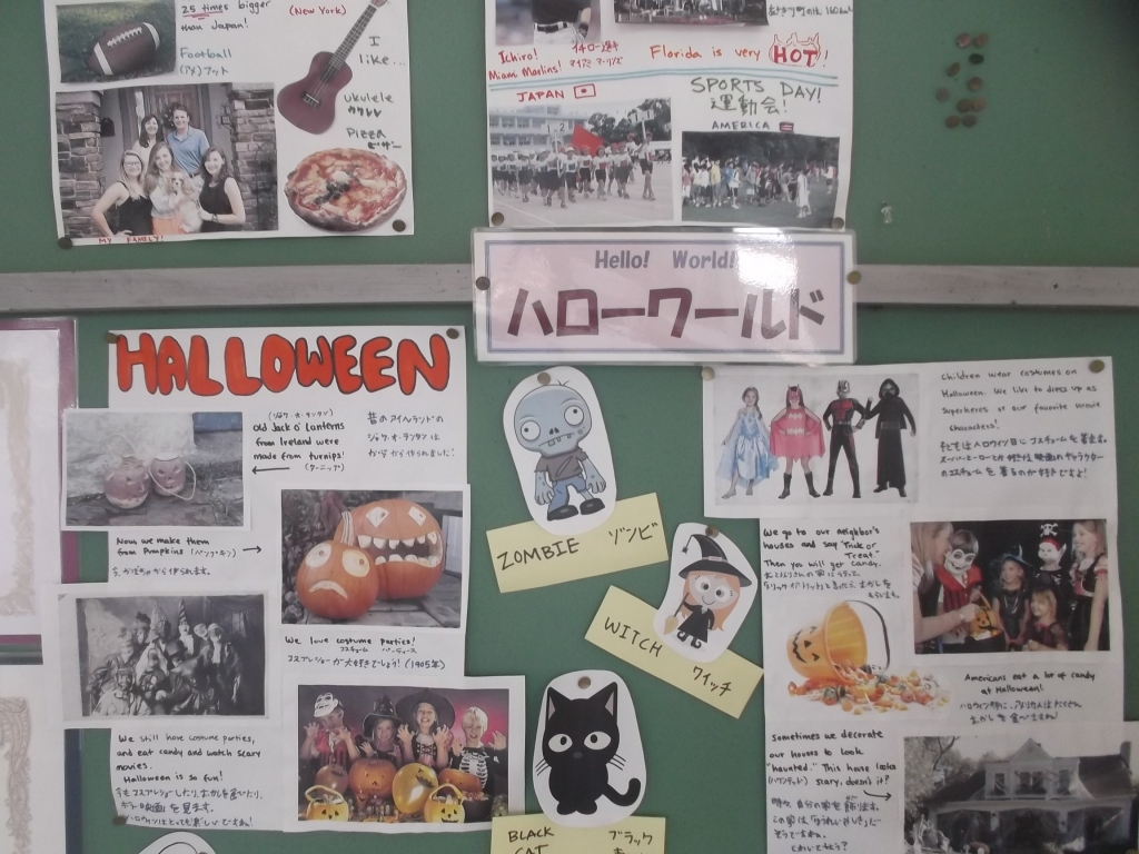 9月よりALTとして本校に来られているケイトリン先生が作れている掲示物です。ハロウィンについてのものです。