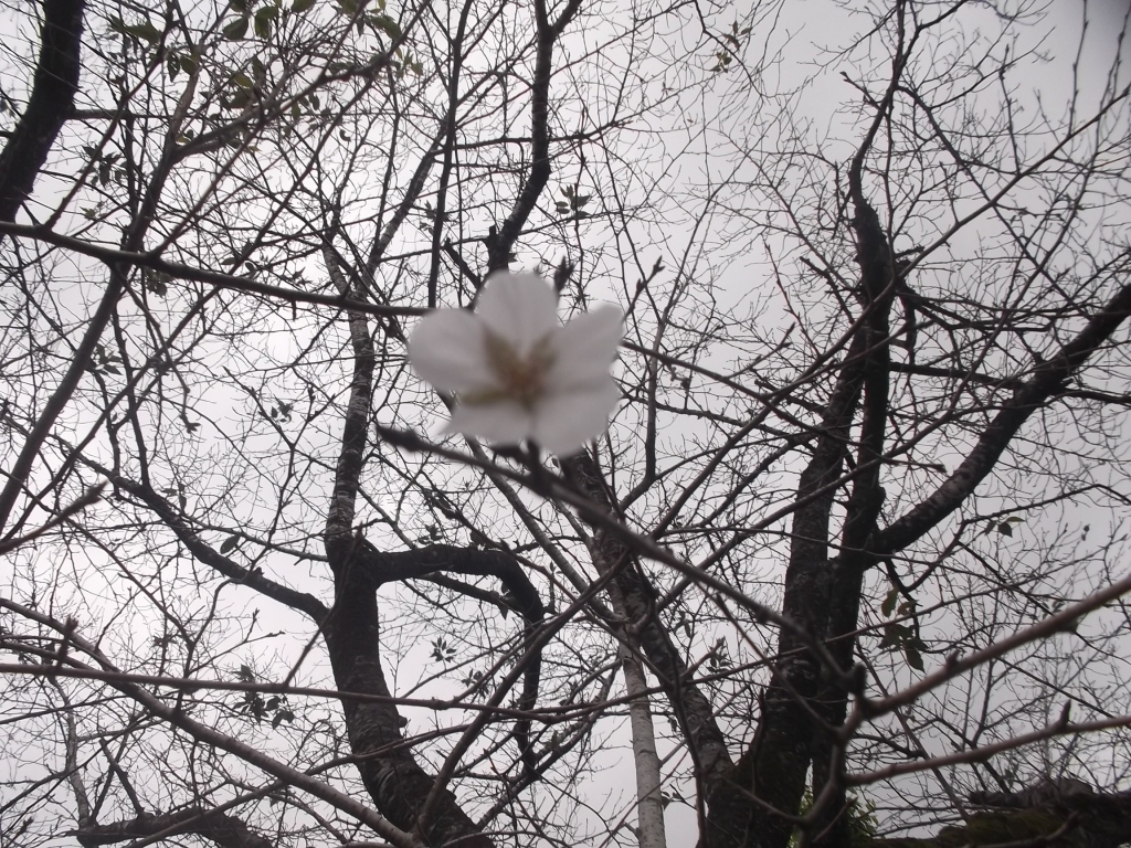 学校のサクラの木に花が咲いていました。ちょうど今頃の気温や日照時間が3月下旬頃とほぼ同じなのでしょうね。