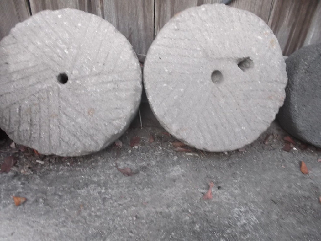 「石うす」もありました。昔は、大豆をひいて自分の家で「とうふ」などをつくっていたそうです。